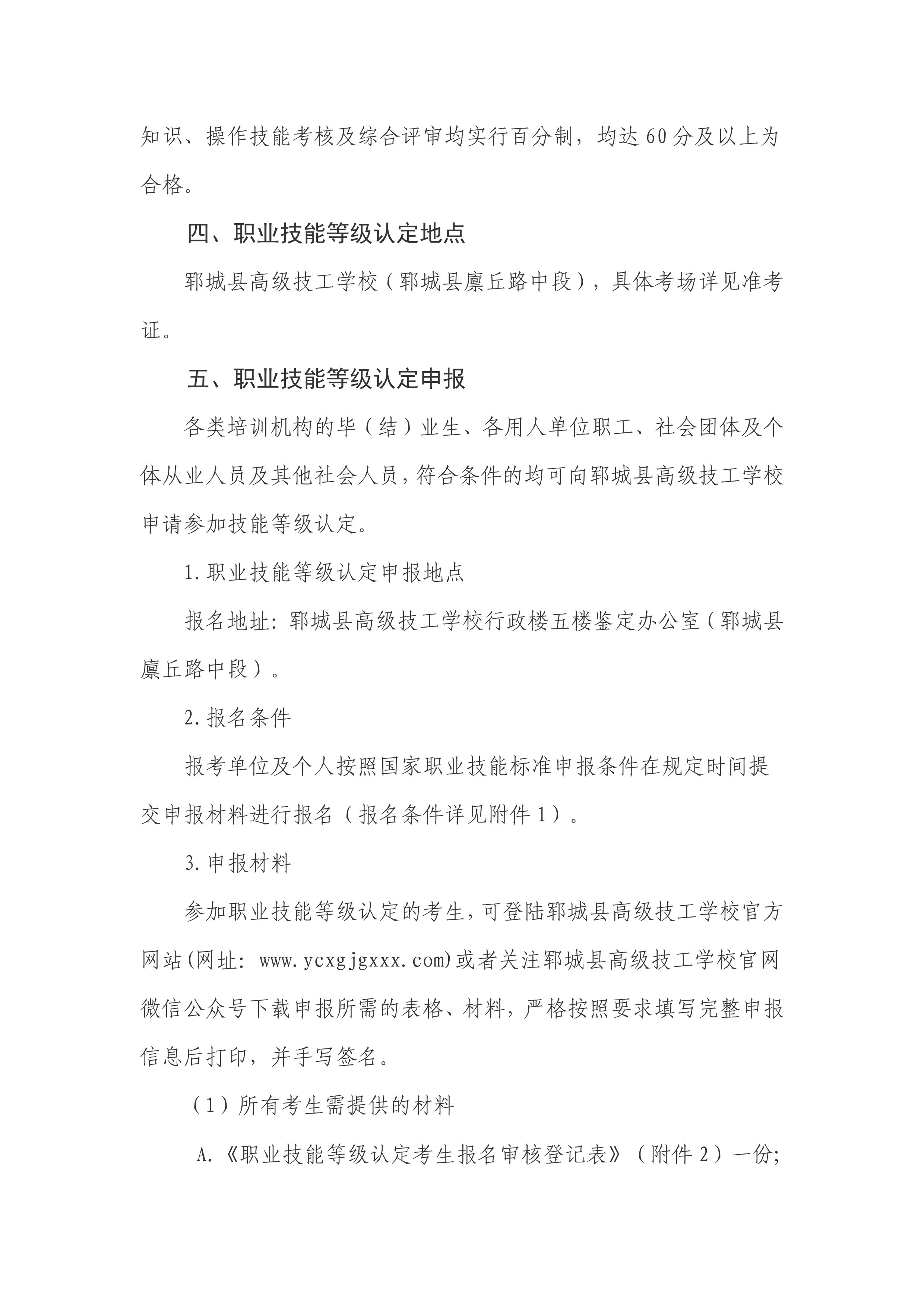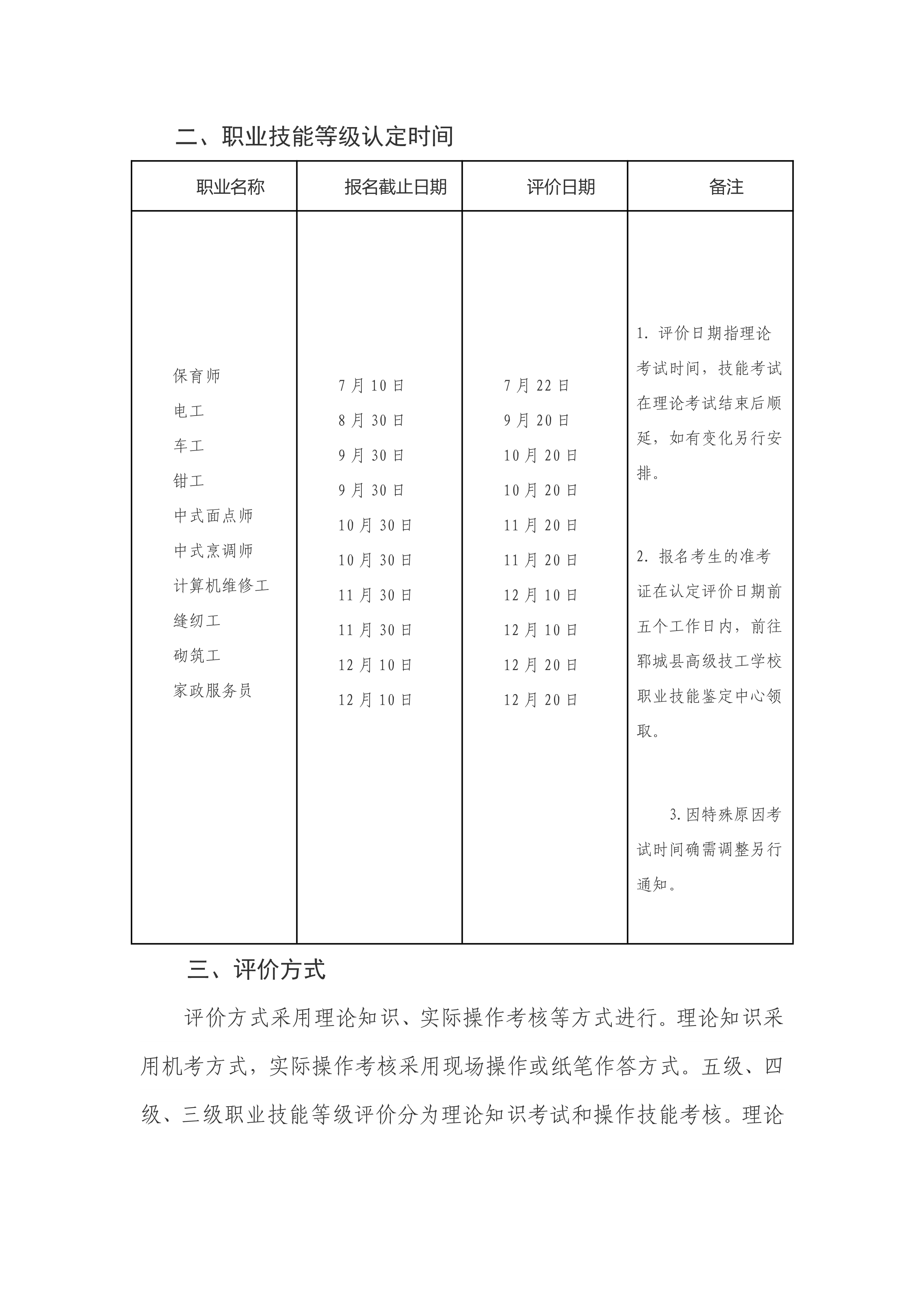 郓城县高级技工学校面向社会开展2023年职业技能等级认定评价计划