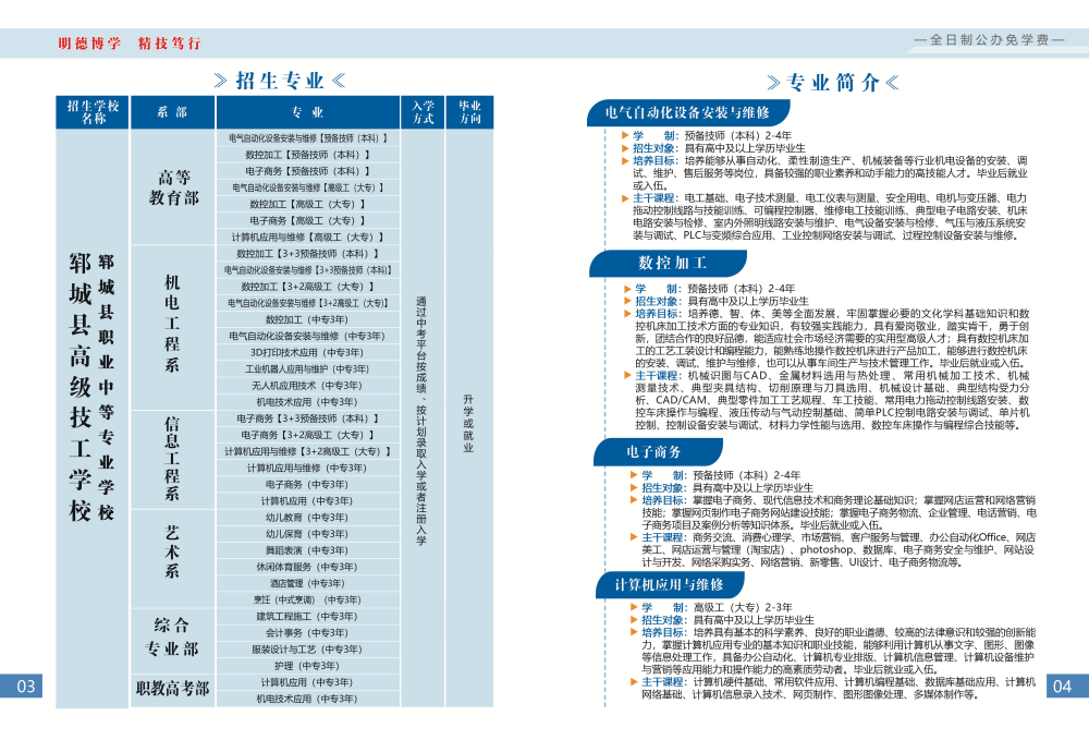 郓城县高级技工学校2024年招生简章